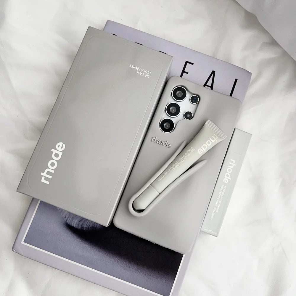 Capa de silicone para Samsung Galaxy com suporte para batom. Combina proteção prática e estilo moderno.